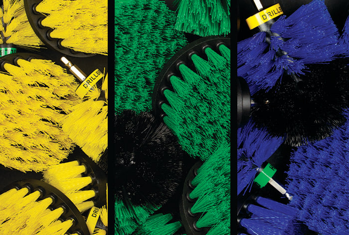 Medium brushes are our most versatile scrubbers. Coming in Yellow, Green, and Blue for Bathroom, Kitchen, and Marine cleaning respectively.