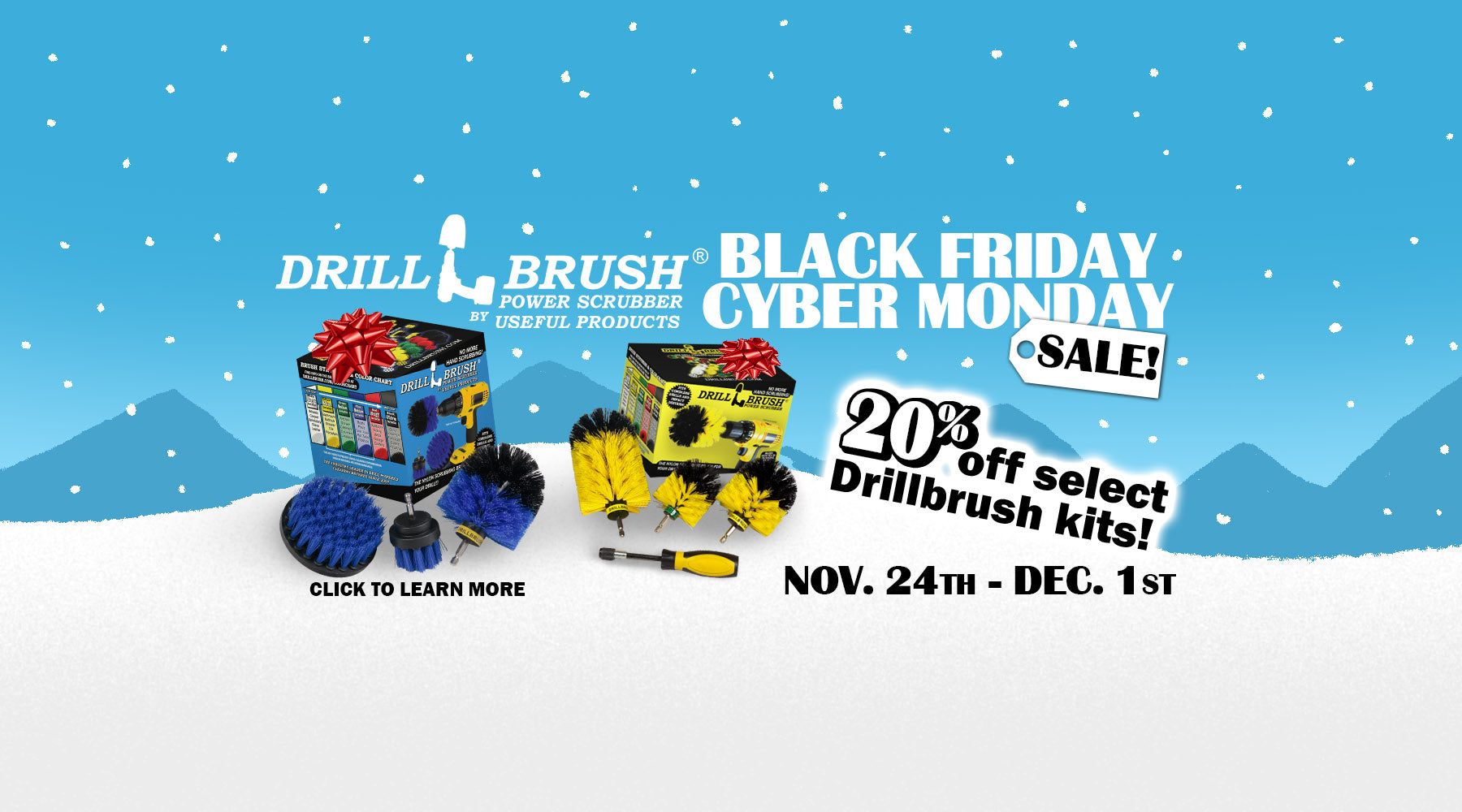 Make the most wonderful time of the year even better with Drillbrush Power Scrubber brushes, kits, and accessories! You can get 20% off select items on our website for the entire Black Friday and Cyber Monday weekend, as well as the week leading up to it! Additionally, we have some exclusive Amazon discounts to make the cleaner in your family happy this holiday season!