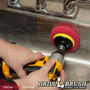 Our pads are designed to leverage the muscle of your cordless drill! The high speed and power allow you to cut through messes up to twice as fast as with hand scrubbing. Our pads are quick and easy to attach as well thanks to our hook-and-loop based backer (not included).