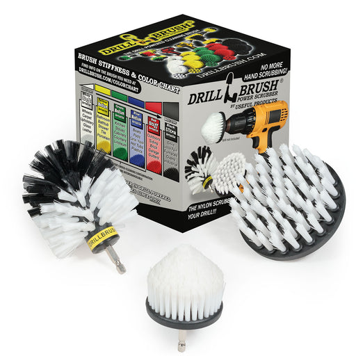 DrillbrushConquer cleaning the entire house, inside and out, with our 3-piece 4in. brush kit! Each brush features: Our white soft nylon bristles - color cod...