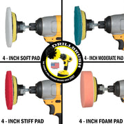 - The 4 inch scrubbing pads come in a variety of stiffnesses from Very Soft to Stiff and can clean and polish flat surfaces around the house. Included in this kit are a Foam Pad (2), Soft White Pads (3), Medium Blue Pads (3), and Stiff Red Pads (3).
