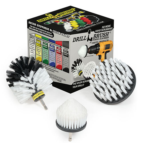 DrillbrushKeep dust off of your knickknacks and your dashboard with this light-duty cleaning kit! Each brush features: Our white low stiffness nylon bristle...